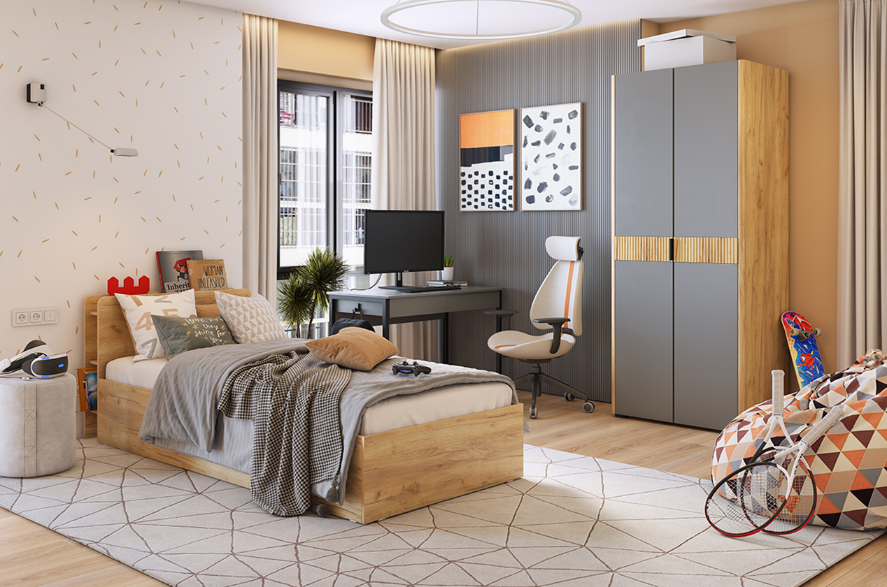 Шкаф трехдверный (зеркало) Адам MSA-05 дуб крафт золотой/графит