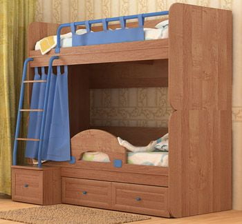 · Комплекс состоит из двухъярусной кровати и двух вместительных выкатных ящиков. · Комплект «НЕМО» можно поставить как две отдельные кровати. · Верхний ярус оборудован удобным и безопасным металлическим бортиком. · Укромное местечко обеспечивает комплект занавесок. · Комплект можно дополнять изделиями из модульной системы «ОЛИМП». · Надежная, безопасная лестница с удобными ступеньками позволит ребенку легко забраться в кровать. · Расположение лестницы (справа или слева) можно выбрать при сборке. · Скругления и радиусные скосы обеспечат безопасность Вашему ребенку.
