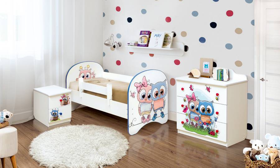 Шкаф 1-но дверный с ящиками и фотопечатью Совята 1.2 Белый/Ярко-розовый/Синий