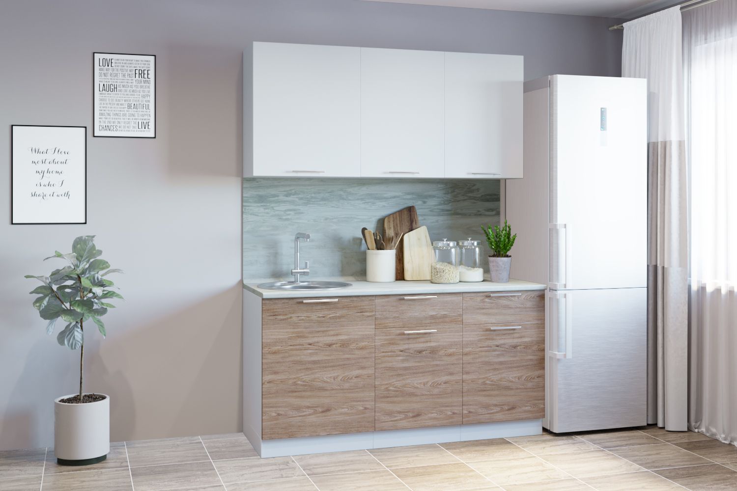 Кух. гарнитур Асти-дуб сонома 1.8, белый/ дуб сонома/ бетон темный / ПФ дуб бунратти (б/с 600)