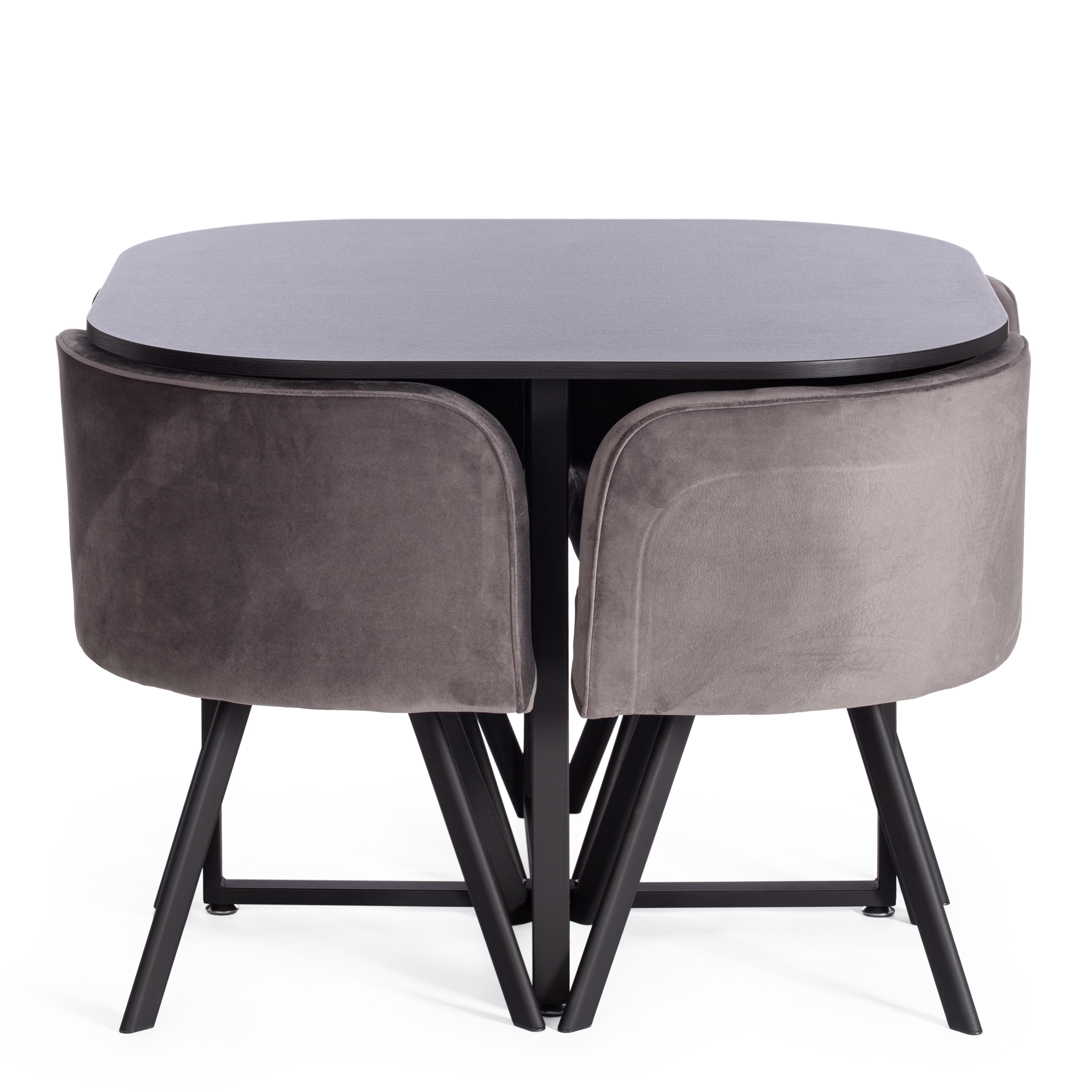 Стильный комплект QUADRON из коллекции MODERN подчеркнет индивидуальность вашего интерьера, не перегружая его лишними деталями. Уникальная обеденная группа идеально впишется в дизайн и кухни, и гостиной. Поверхность стола из МДФ проста в уходе, выдерживает воздействие жидкостей и тепла, не деформируется со временем. Сочетание устойчивых металлических ножек и оригинальной столешницы выглядит современно и стильно. Модель не имеет острых углов, что является неоспоримым преимуществом при выборе предметов мебели для дома. Размеры стола позволяют грамотно организовать пространство и разместить с комфортом до четырех человек. Привлекательный и необычный дизайн стульев удивит даже самого требовательного владельца. Надежное основание кресла изготовлено из металла, сиденье и спинка обиты мягким вельветом. Сочетание черного каркаса (Black) и светло-серой ткани (Light-grey) выглядит стильно и утонченно, что позволяет вписать модель в любой интерьер. Элегантный комплект QUADRON будет восхищать владельца своей оригинальностью, безупречностью и долговечностью на протяжении длительного времени.