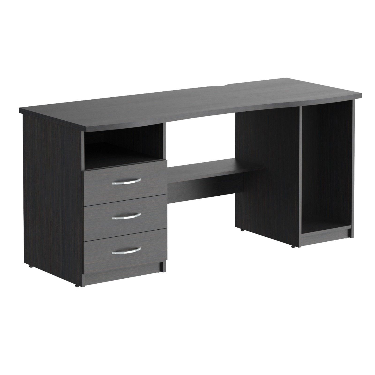 Основательный многофункциональный стол с тумбой на 3 ящика и большой нишей под системный блок. Центральная полка позволяет установить под столешницей принтер, сканер или МФУ. Небольшой эргономичный вырез столешницы обеспечивает дополнительное удобство при посадке.
