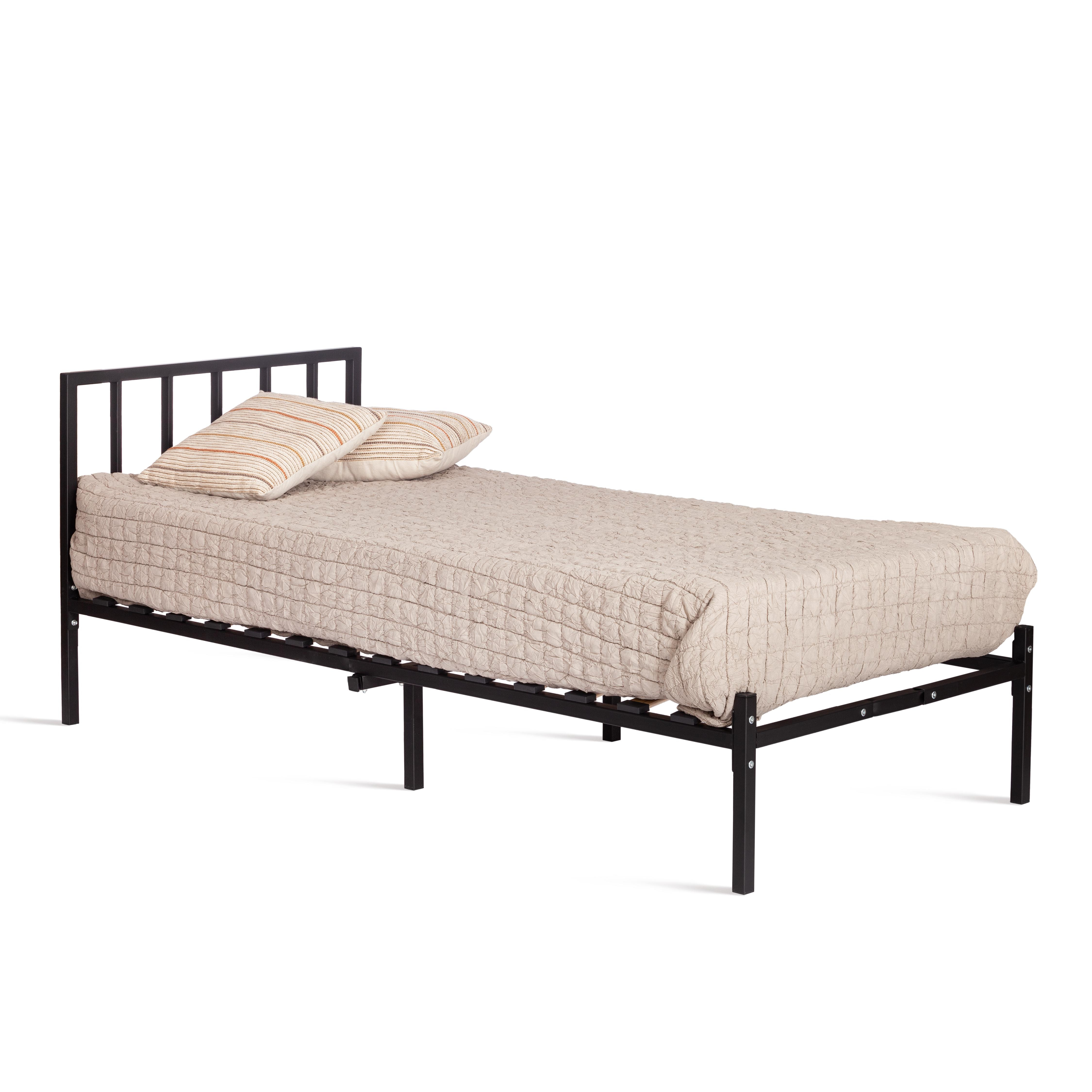Функциональная и элегантная кровать Bruno – идеальный вариант для спальни, детской или гостевой комнаты. Модель прекрасно сочетается с любым дизайном и делает ее универсальным выбором для разнообразных интерьеров. Металлический каркас гарантирует прочность и долговечность кровати, а деревянные ламели обеспечивают удобную поддержку для позвоночника, способствуя здоровому и качественному отдыху. Практичные размеры односпальной кровати позволят свободно разместиться и хорошо выспаться после тяжелого дня. Привлекательная модель проста в уходе, прочна, надежна, не теряет своего первоначального внешнего вида долгие годы. Оригинальная односпальная кровать Bruno черного цвета выглядит стильно и современно. Строгий и простой дизайн модели добавит ноты элегантности и безупречности в помещение, создавая в нем атмосферу комфорта и гармонии. Кровать очень проста в сборке, инструкция по сборке прилагается. Страна-производитель: РОССИЯ