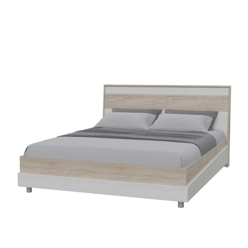 Спальня представлена в сочетании современных цветов дуб сонома и рамух белый.
