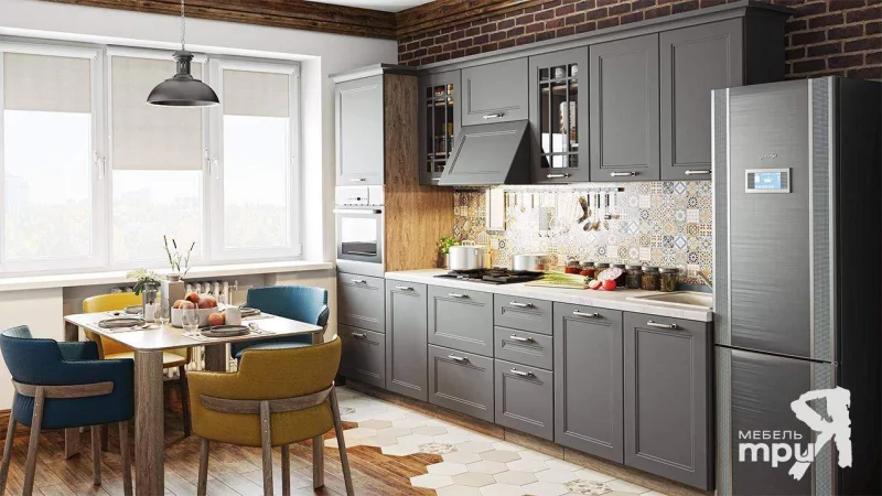 Одним из основных акцентов, делающих кухню стильной и современной, являются металлические ручки цвета «Брашированное старинное олово».