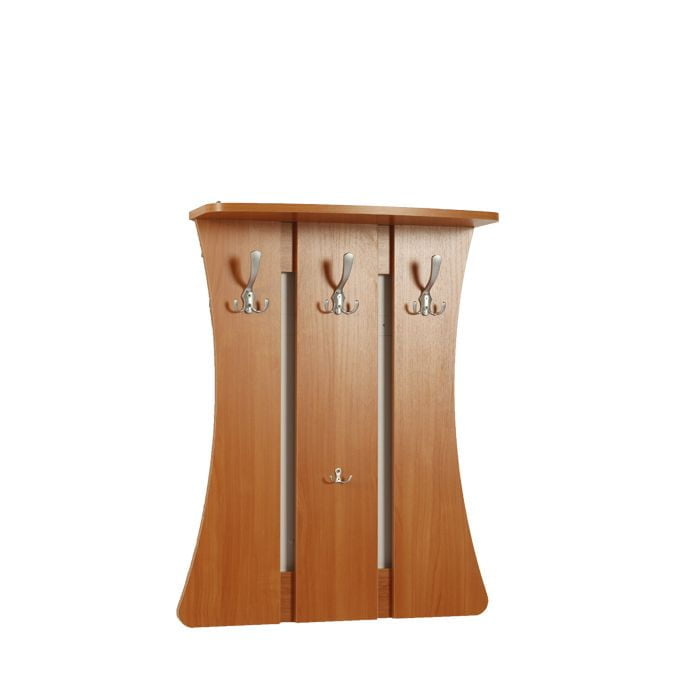 Настенная вешалка с тремя крючками для одежды и одним маленьким крючком для сумок, зонтов. Изделие выполнено из высококачественной ЛДСП отечественного производства. Края отделаны кромкой ПВХ 0. 4 и 1 мм. Изделие поставляется в разобранном виде, хорошо упаковано в гофротару. В комплект входит инструкция.