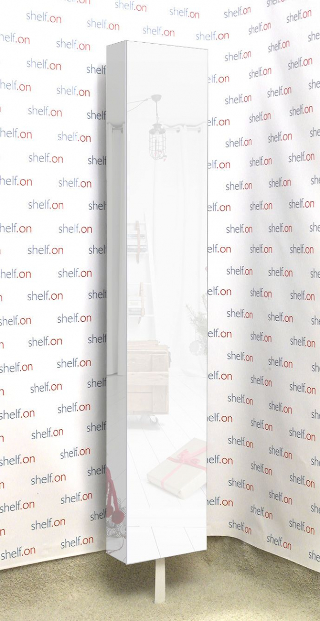 Корпус шкафа изготовлен из влагостойкого ЛДСП цвета венге или молочный дуб. С трех сторон шкафа - глянцевое белое стекло. Внутри - 6 широких полок. Поворачивается шкаф на 360°, скрывая полки. Поворотный шкаф крепится к стене на двух кронштейнах, нижний опирается на пол.