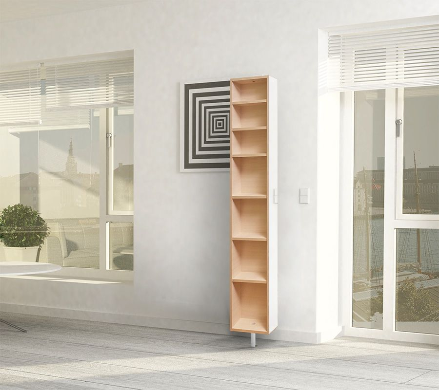 Поворотный зеркальный шкаф Зум Шелф Молочный дуб
