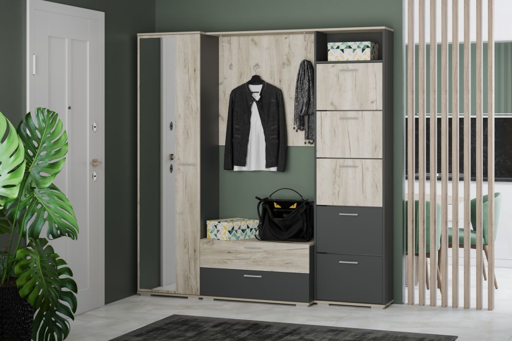 Прихожая Санти набор №2 Антрацит/Дуб Крафт Серый