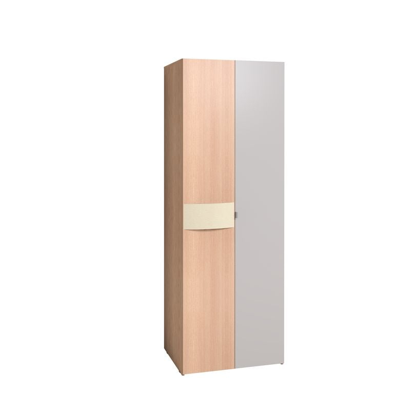 Удобный и стильный шкаф для одежды поможет сохранить ваши вещи в идеальном состоянии. И мало того, не просто вещи, а целое множество вещей. Ведь помимо стационарной штанги, установленной во внутреннем пространстве, вы также получаете две большие полки для хранения, например, коробок или обуви. Внешний фасад шкафа весьма необычен - одна дверь с зеркалом, на второй установлена радиусная мягкая ручка, оформленная винилкожей цвета «топленое молоко».
