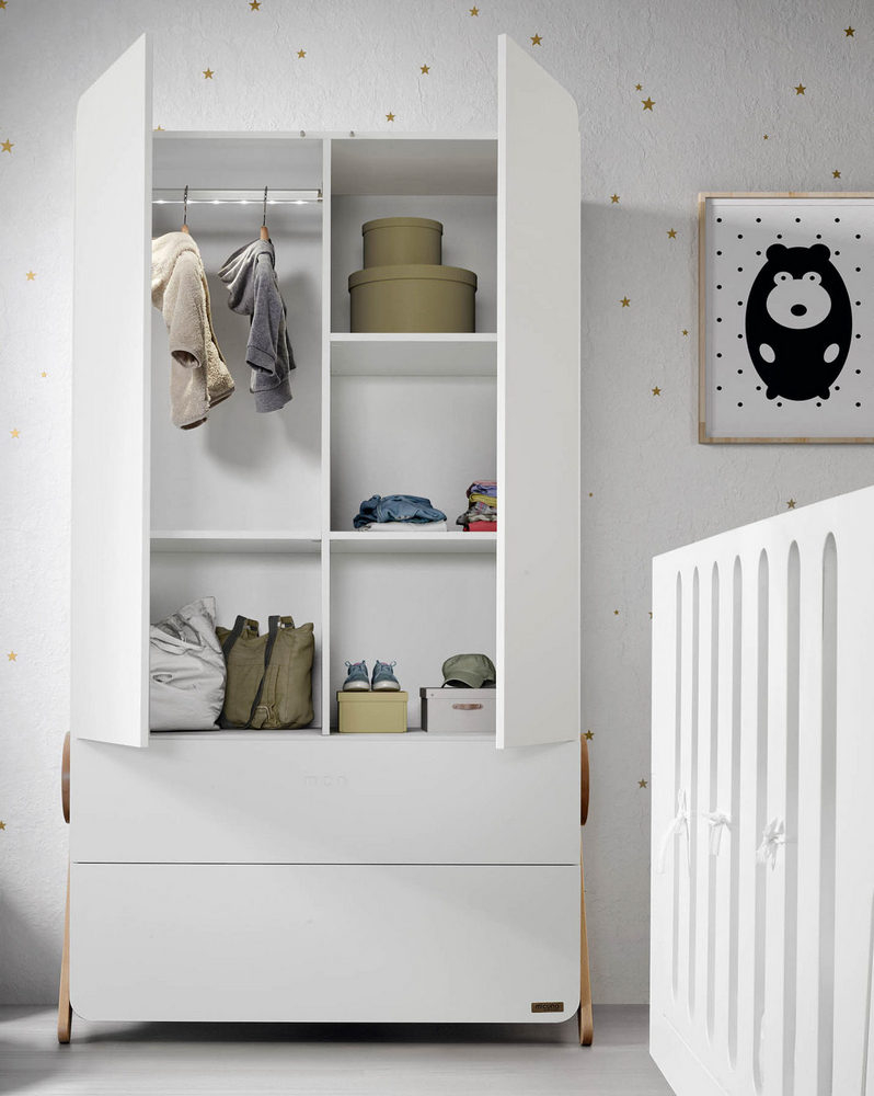 Удобный, вместительный шкаф Micuna, созданный из высококачественных материалов, прослужит Вам долго и станет отличным пристанищем для одежды, белья и игрушек Вашего малыша. Просторные отделения, удобные полки и вешалка для плечиков делают шкаф не только красивым, но и удивительно функциональным предметом интерьера.