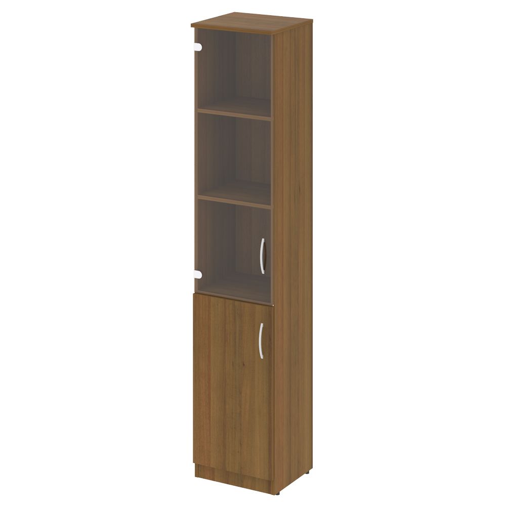 Шкаф высокий узкий левый (1 низкая дверь ЛДСП, 1 средняя дверь стекло) НОВА С В.СУ-1.2 Л Орех Гварнери / NOVA S L
