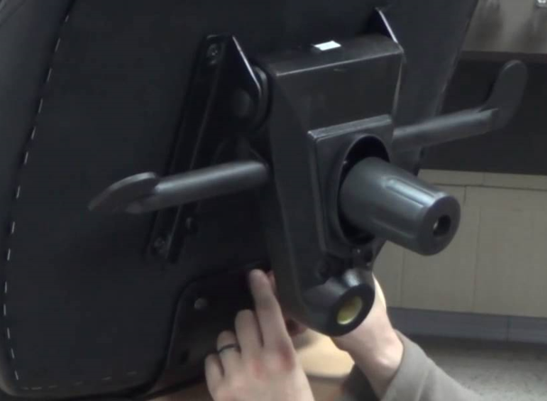Осторожно и аккуратно насадите регулировочный механизм (он прикручен снизу сиденья) на шток газлифта. На этом шаге старайтесь вообще не прикладывать силу, главное – точность.