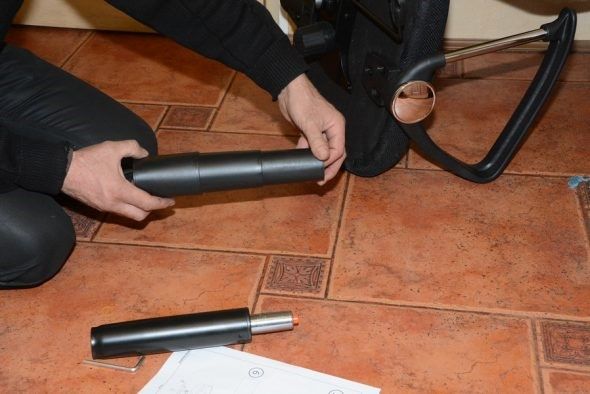 На самом деле, «собрать компьютерное кресло своими руками» – это не вполне корректная фраза: самые сложные детали уже собраны. В том числе и газлифт: подъёмный механизм, на который приходится основная нагрузка. Вам осталось только поставить его в специальные отверстия на крестовине и механизме сиденья.