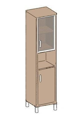 Каркасы шкафов выполнены из ЛДСП толщиной 25мм., кромка ПВХ т. 2мм. Задняя стенка из ХДФ т.4мм разрезная в паз. Внутренние полки из ЛДСП 18мм., кромка ПВХ т.0,8 мм. ЛДСП т 25мм., кромка ПВХ т. 2 с фасадной стороны, кромка ПВХ т. 0,8 с трех сторон. В упаковке один горизонтальный щит, который можно устанавливать вверху или внизу изделия. Опора регулируемая, цвет алюминий. Стеклянная дверь в алюминиевой рамке, стекло - тонированное пленкой, бронза. Ручка скоба, цвет алюминий. Двери вкладные.