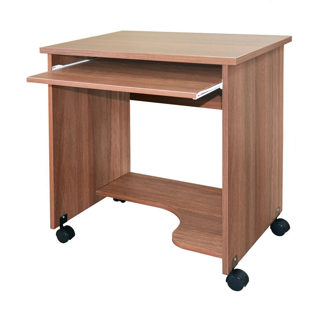 Супер - компактный компьютерный столик, который занимает совсем мало пространства, но, не смотря на очень компактные размеры данной модели, за столом очень удобно работать. Наличие полочки для клавиатуры позволяет сэкономить место на поверхности стола. Стол оборудован колесными опорами, что позволяет с легкостью перемещать его при необходимости.  Обеспечить упорядоченное хранение Вам поможет приобретение дополнительной надстройки.