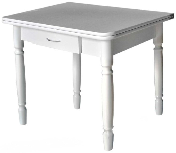 Стол обеденный Ломберный с ящиком 1 кат 4040 мат Ноги белые ЛДСП белый