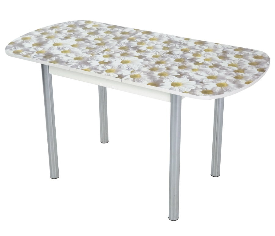 Стол обеденный Раздвижной ЕВРО фп Ромашки Д006 ЛДСП серый