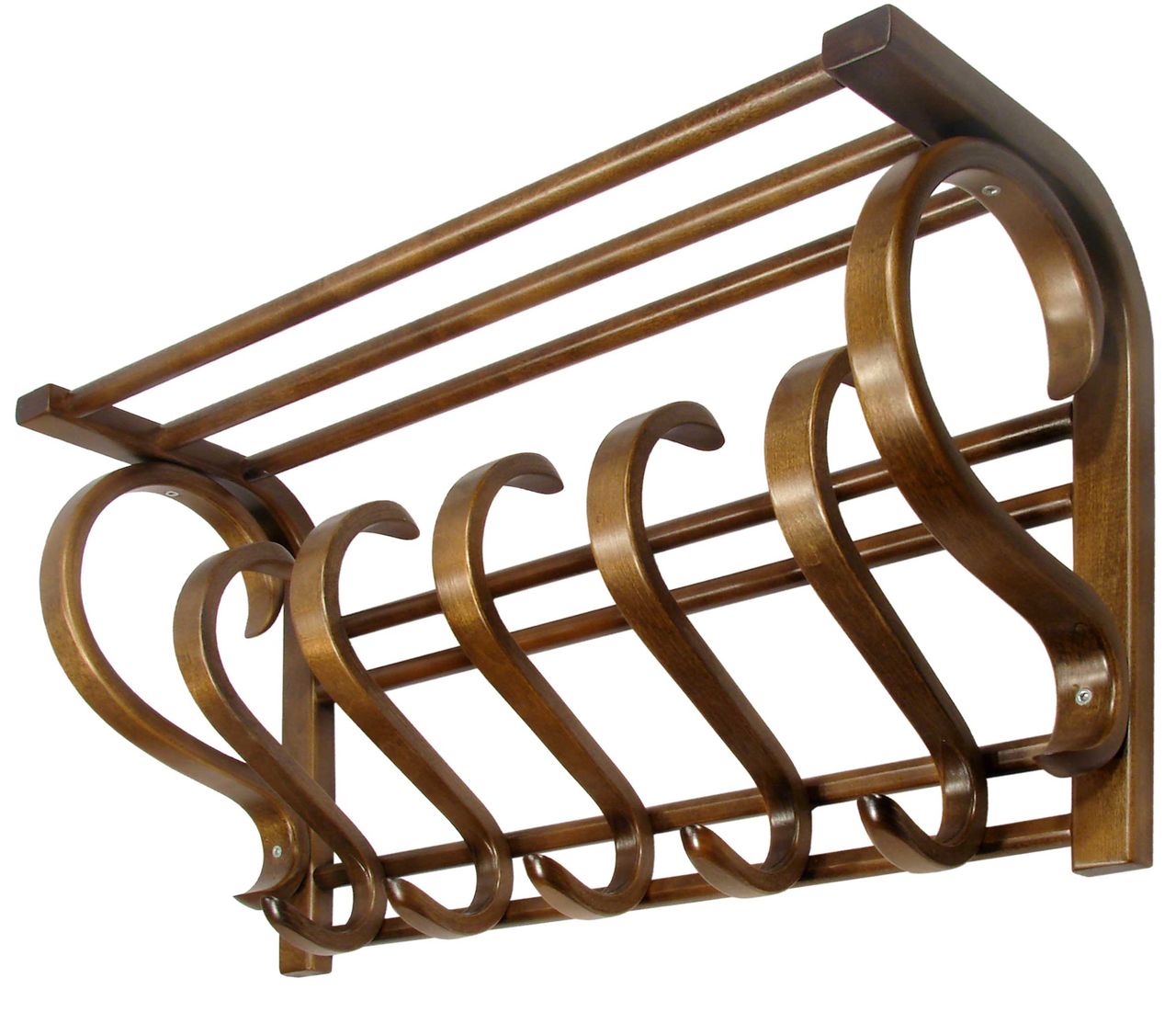 Вешалка настенная В5Н – полностью деревянная вешалка в пространстве прихожей квартиры или частного дома. Модель В5Н – экономичный вариант модели В7Н. По функционалу обе модели идентичны. Пять крючков для одежды, столько же для головных убров, полочка на которой можно хранить коробки, или просто бытовые мелочи. Крючки вешалки изготовлены по технологии гнуто-клеенного шпона, что с одной стороны обеспечивает высокую прочность крючков, с другой стороны позволяет сделать крючки изящными.Вешалка В5Н – простой и экономичный вариант организации прихожей в классическом стиле, в ретро стиле, вешалка отлично впишется в интерьер в стиле шале.