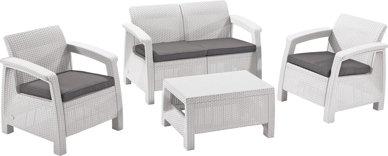 Удобный комплект мебели из искусственного ротанга производства фирмы Keter. Широкий диван позволяет поместится большому количеству людей, а высокие спинки мебели создают прекрасные условия для отдыха на открытом воздухе.